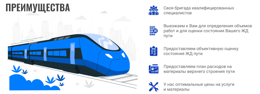 По Вашему запросу специалисты нашей компании готовы выехать на Ваше предприятие для определения объемов работ и для оценки состояния Вашего железнодорожного пути.